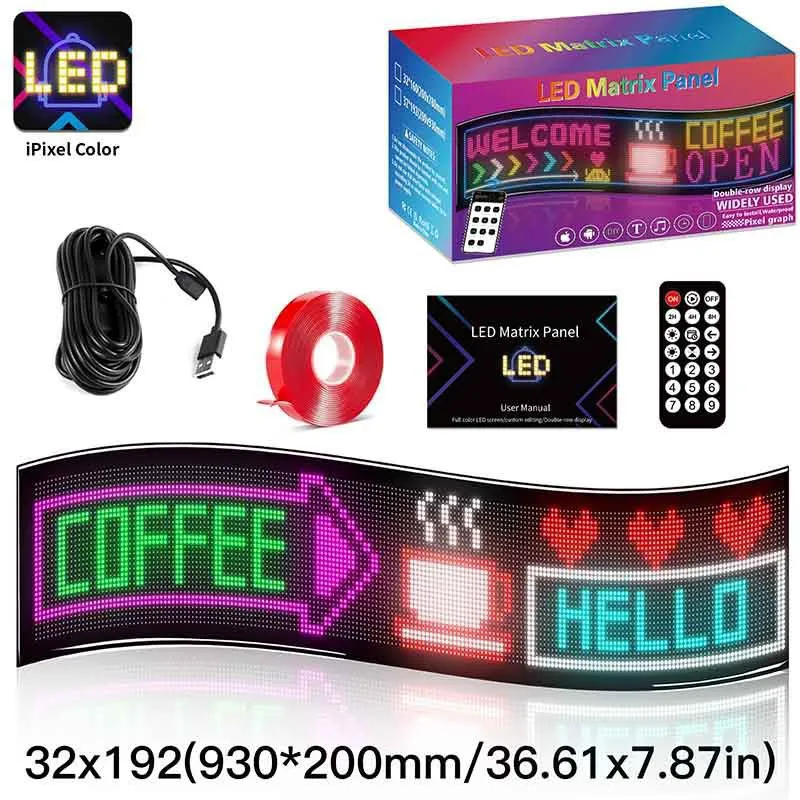 A smart mobile APP controlled flexible LED matrix panel screen designed for windshields and store-front advertising.